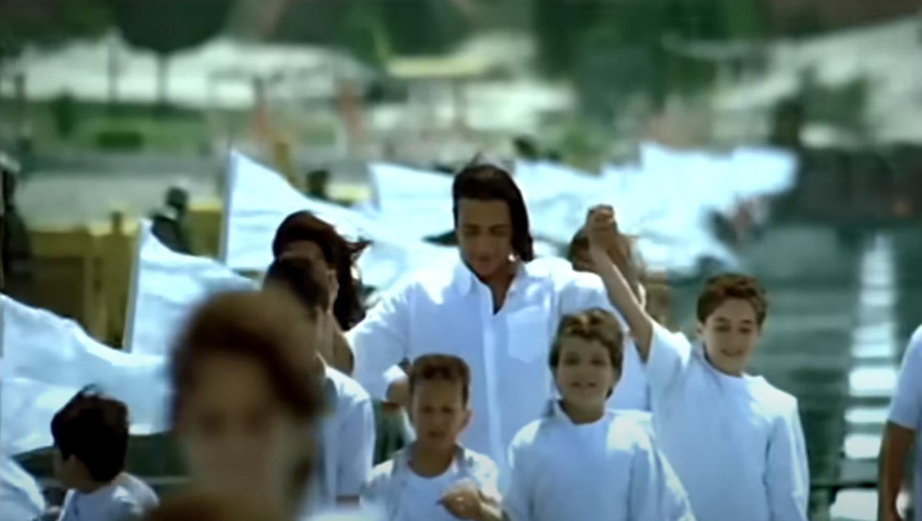 Un autre souvenir me revient : celui de la chanson « Sina » par Hamid El Shaeri, dans laquelle on retrouve à nouveau une équipe, cette fois-ci de chanteurs·ses, réunie par la même ardeur nationaliste. Celle-ci précède les années 2010 mais elle porte déjà un cri de ralliement pour l’unité du « peuple » et la défense du territoire égyptien – la région du Sinaï étant déjà la cible de nombreuses attaques meurtrières. J’adorais cette chanson petite et j’admirais toustes celleux qui figuraient dans le clip, tant les adultes que les enfants. Leurs tenues blanches me faisaient rêver. Je voulais être une des leurs, propre sur moi, bien habillée, et réunie avec les miens dans le désert du Sinaï, autour d’un feu de camp.